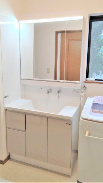 今回リフォームしたシステムバス・洗面化粧台は、明るくてお手入れが楽で、壁面収納に磁石が使えるのは最高です!新築のようになった浴室・洗面室に、里帰りする娘と孫も喜んでくれると思います!(^^)!これからも、長く使っていけそうです。