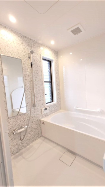 浴室パネルのテラゾーホワイトがとってもオシャレです♫