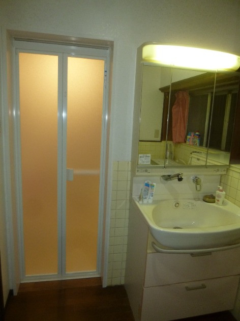 天井・壁のクロスを貼替え(下地も変えました)、照明器具の交換をする事により、明るい脱衣所になりました。