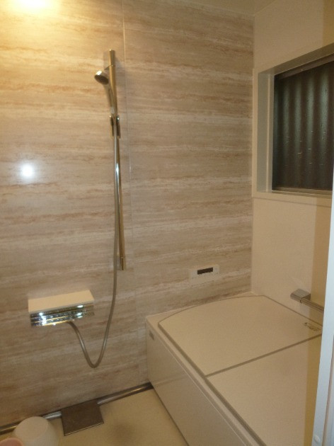 北側の浴室は、いつも暗く寒々としていました。脱衣所も含めて壁や床も薄暗く、明るい雰囲気にしたいとずっと考えていました。今回思い切ってリフォームをして、広い浴槽になり暖かく明るい雰囲気でとても満足をしております。
