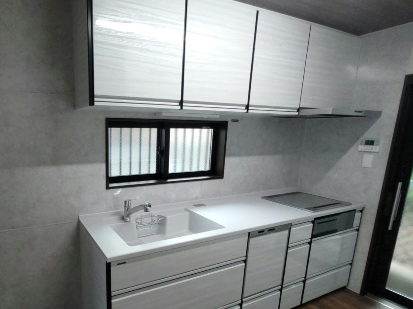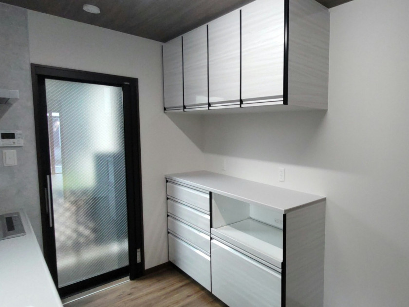 お施主様は料理好きで焼き物をよくされるそうです。そこでキッチン側の壁は全面ホーローパネルとし、拭き掃除がしやすいようにしました。