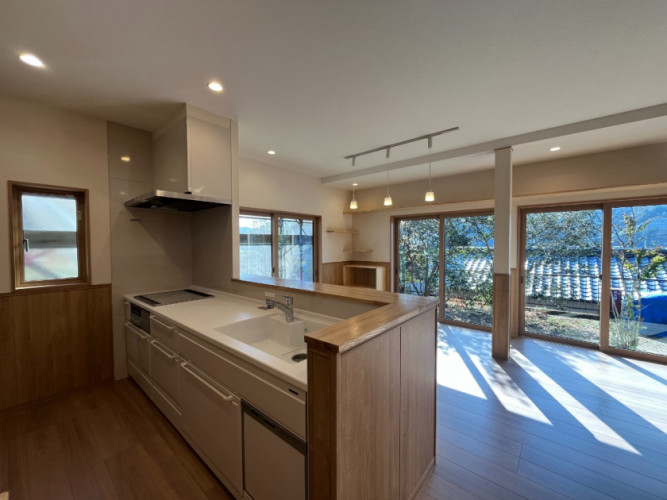 塗り壁や化粧板を採用し、傷や汚れに強い仕上がりに。窓や断熱材のグレードも向上させ、断熱性能をアップしました。