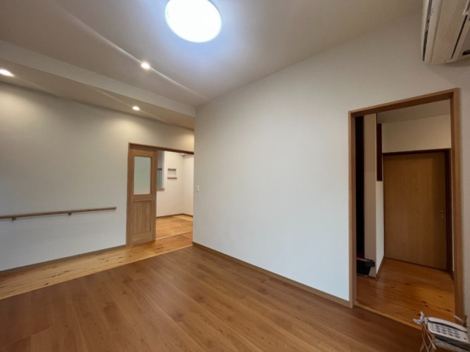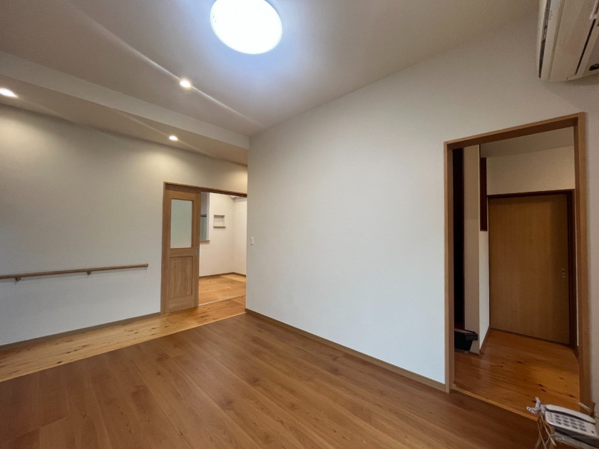 リビングとダイニングを仕切っていた壁を撤去し、老後も行き来しやすい空間にしました。