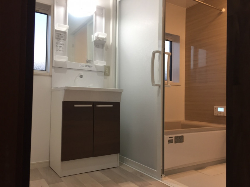 浴室は保温性の高いシステムバスに。洗面室の窓も小さくし、断熱性の高いサッシに変更。浴室暖房も取り付け、冬の寒さ対策はばっちりです。