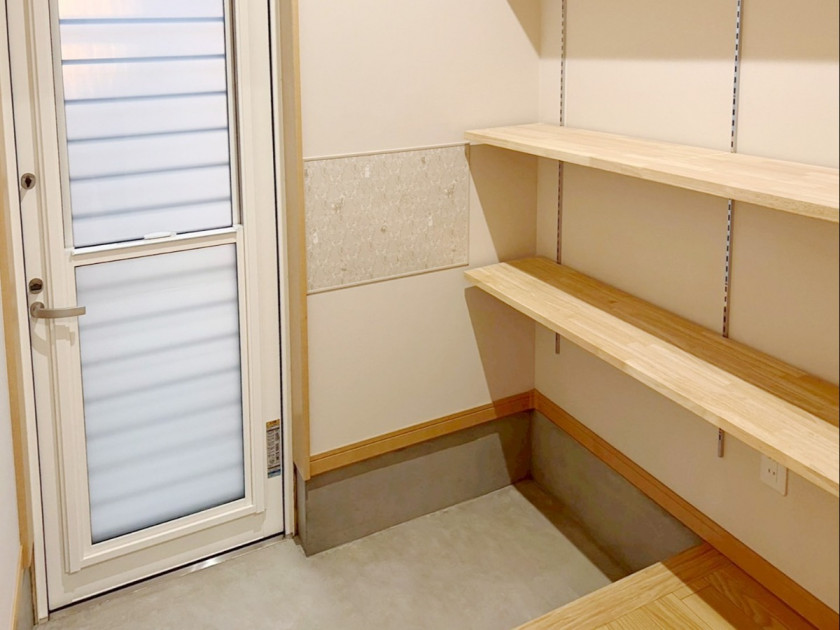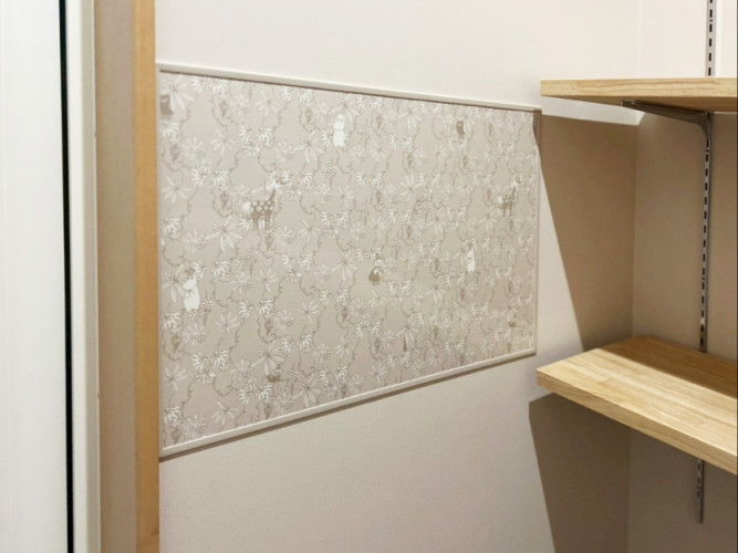 キッチンで余ったホーローパネルを奥様の希望スペースにも貼りました。ホーローなので鍵などマグネットで掛けられると大変喜んで頂きました。