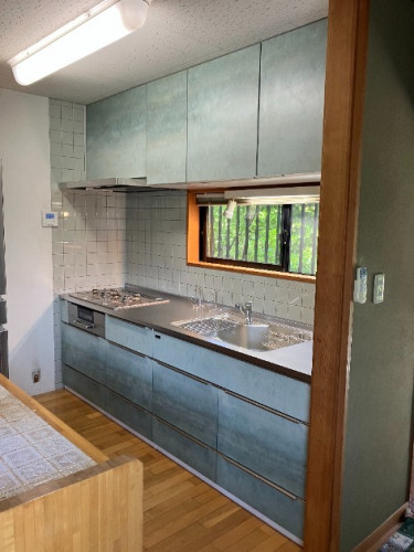 古くなったキッチン入替したく、ガス供給を受けている川岸商会さんに声掛け。