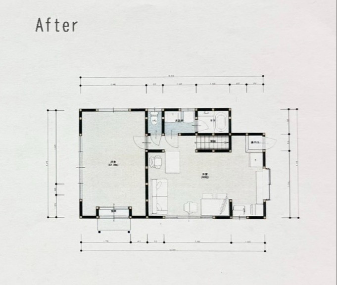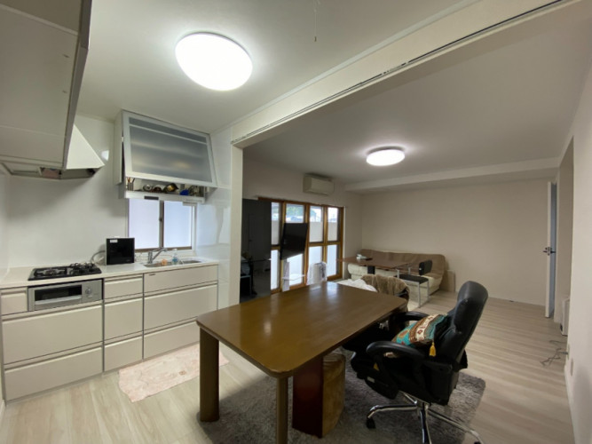 配置子供の就職で、2人暮らしとなりました。今までは、居間と台所が仕切られておりました。狭い廊下を通ってリビングや、トイレ、洗面所への出入りをしてました。リフォーム工事で、一体の空間となり開放感のある広く、どこに行くにも、近いし、視界も良く、すべての事が、見えて、生活しやすくなりました。動きが、見えるって、本当に楽なんだと実感しております。狭いスペースに合うミニキッチンの配置を計画してくれて、電動昇降付きの食器棚により、本当に広く一体の空間ができて、とても、家事がしやすく工事して本当に、良かったです。