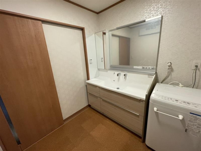 脱衣のリフォームで、収納数が少なく、落ち着きが無い脱衣所でしたがW1200の洗面の設置により収納しやすく使い勝手がよくなった。