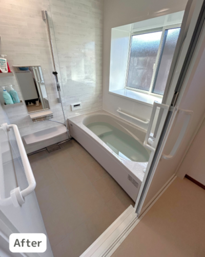 入り口の段差解消や手すりの設置など、暖かい安心安全な浴室になりました。