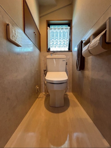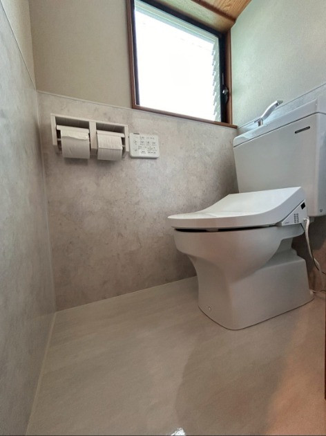 1Fトイレと同色をご採用いただきましたが、照明の色によって見え方が全く異なります。