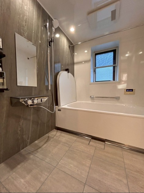 アクセントにてご採用いただいたジオマーブルモスグレーが高級感を演出するUBとなりました。