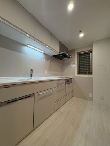 マンションの構造上、右側に配管スペースがあったため、そちらも併せてホーローパネルを施工しました。