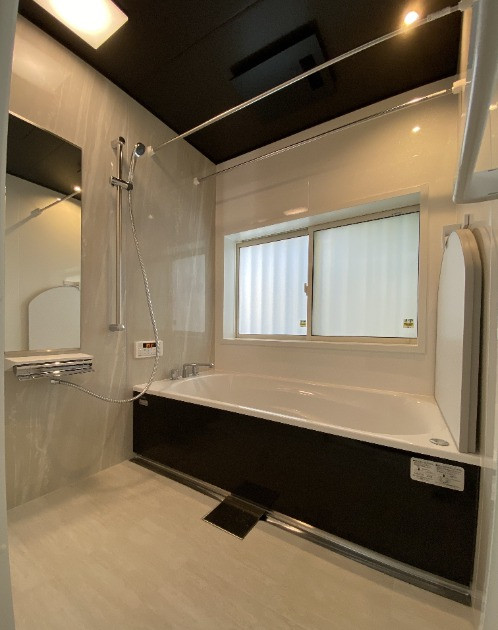 天井材を黒にすることにより、より高級感のあるお風呂にすることができました。