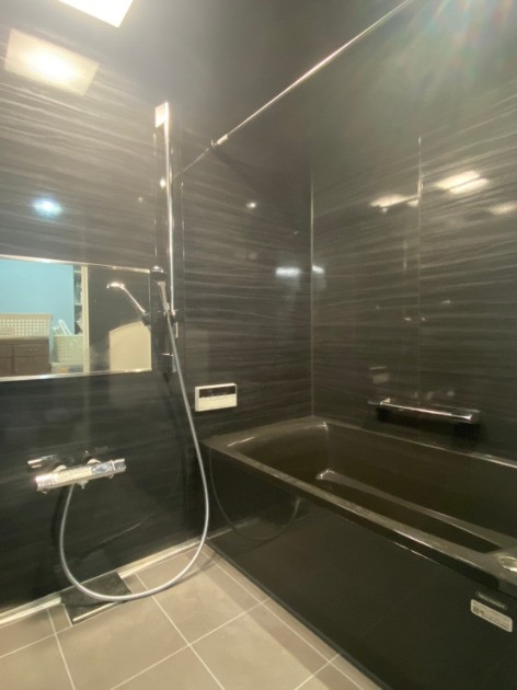 ブラックベースのパネル・浴槽・床をご選定頂き、ホテルライクな浴室へと仕上がりました。