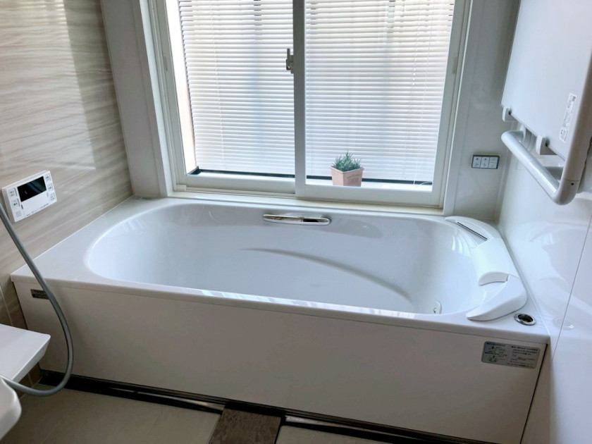 浴室の床高さが変更されたことで、窓と浴槽面がシンデレラフィットし、広々とした印象になりました。