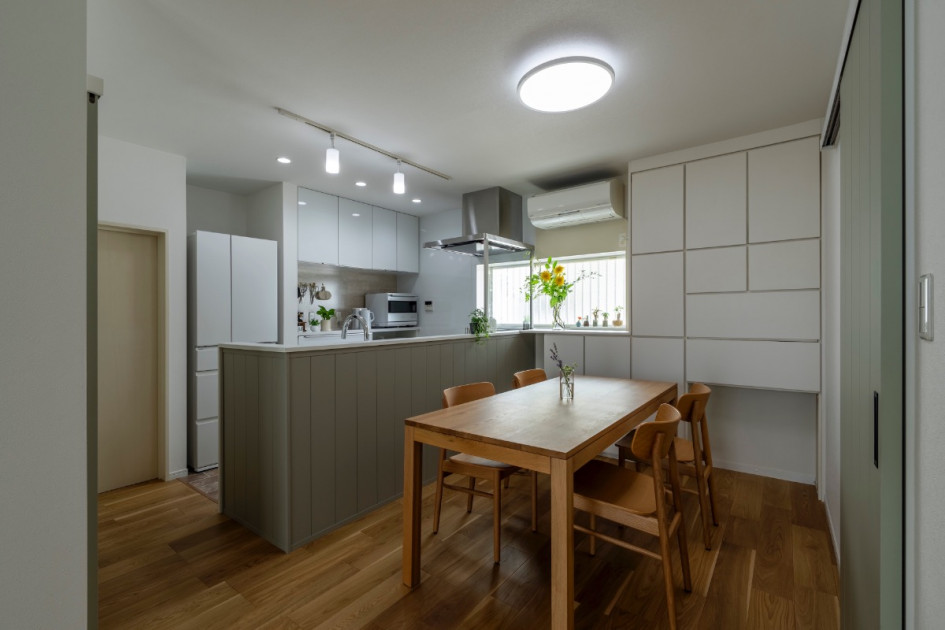 ご主人は床材にこだわりを、奥様はキッチンにこだわりをお持ちで、時間をかけて提案させていただきました。