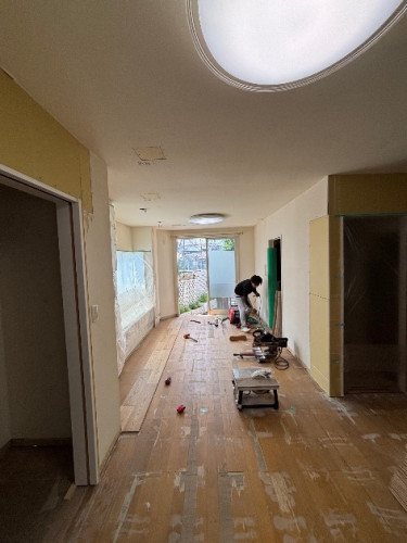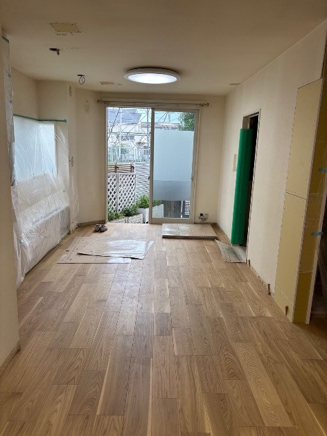 床材については、既存の床材を全て剥がした上で張り替え、ペット対応の丈夫な突板フローリング材を施工しました。