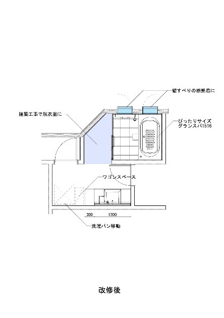 納得のグランスパ 台形の形状の在来浴室のお悩み 解決出来ました