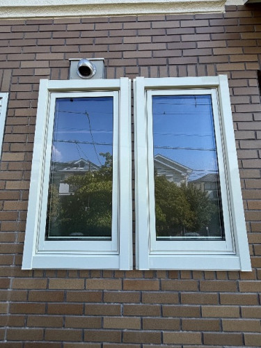 新しい縦すべりの窓の周りを汎用カバーモールにて納めました。レンガタイルの破損もなく、無事に完成しました。これで冬場の寒い時期も安心です。