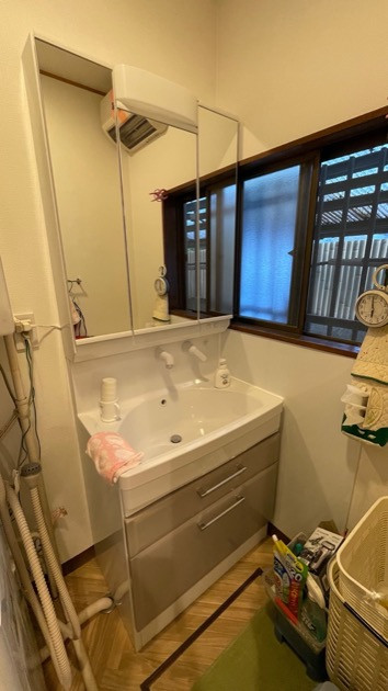 収納に便利な引き出しタイプの洗面化粧台にしたいとのご希望があり、毛染めにも対応したホーローボウルのオンディーヌを提案させていただきました。今回、壁と床の内装工事もセットで行うことになり、洗濯機、洗面の給水・給湯配管も更新することになりました。
