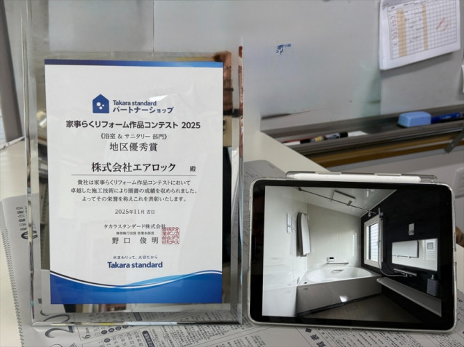 (株)エアロックでは、「家事らくリフォーム作品コンテスト2025」にて今年も優秀賞を頂くことが出来ました。これもひとえに皆様のおかげです。心よりお礼申し上げます。 お店の詳細を見る