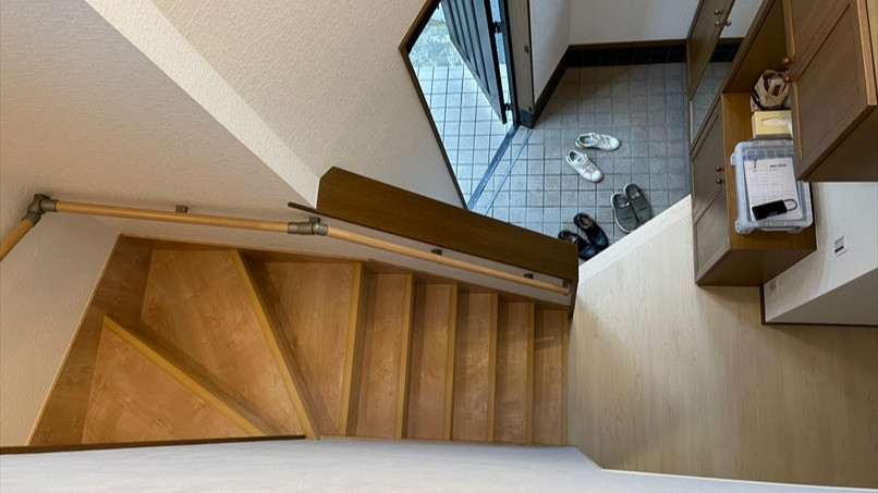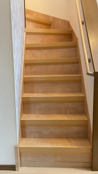 室内全体の床・壁・天井のリフォーム、クロスは貼替え、床は塩ビタイル貼り、階段はカバー工法でまるで新築の様になりました。トイレもリフォームし2階のトイレ便器は交換しました。照明器具もLEDに全て交換。