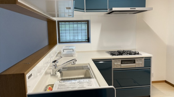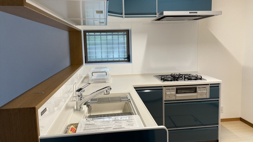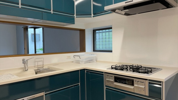 使い古くなったシステムキッチン、入居前に新しいキッチンに交換。タカラスタンダードのトレーシアで組みました。コーナータイプのキッチンでしたので同じ様にコーナータイプに、ホーローの良さに惚れ込んでます。