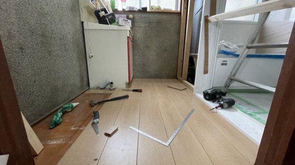 かなり昔の建物で洗面所の床も凸凹のギシギシと鳴っている状態でした。