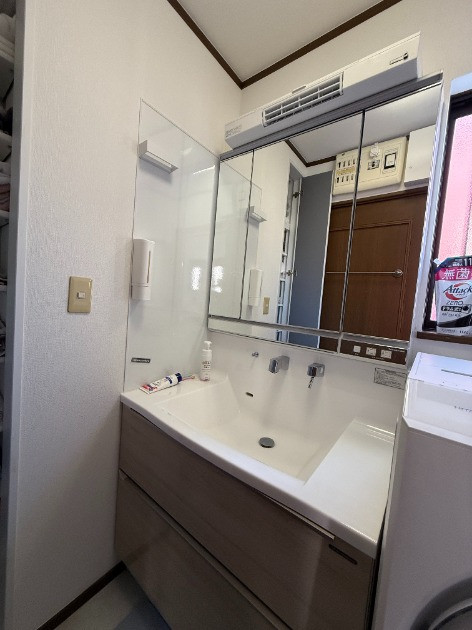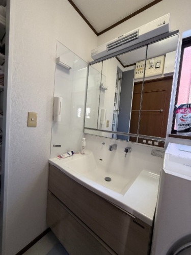 洗面化粧台はタカラ製のエリーナ900タイプに洗面脱衣所に洗面ルームーヒーターを設置しました