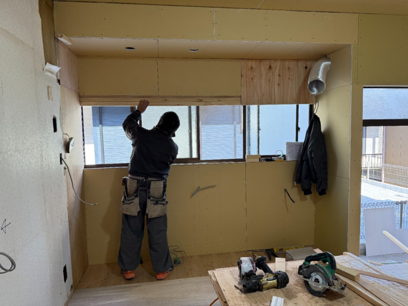 キッチンセット前に下地補強工事