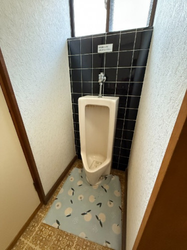 トールユニットを利用して小便器の境にして収納力もアップ出来、小便器の腰壁はホーローパネルで清潔になちました。