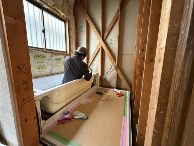ユニットバス組付け中