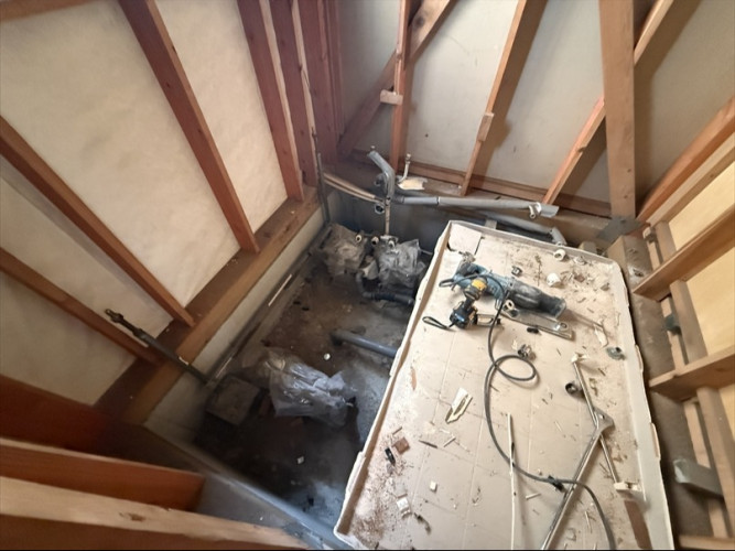 既存のユニットバスの解体開始