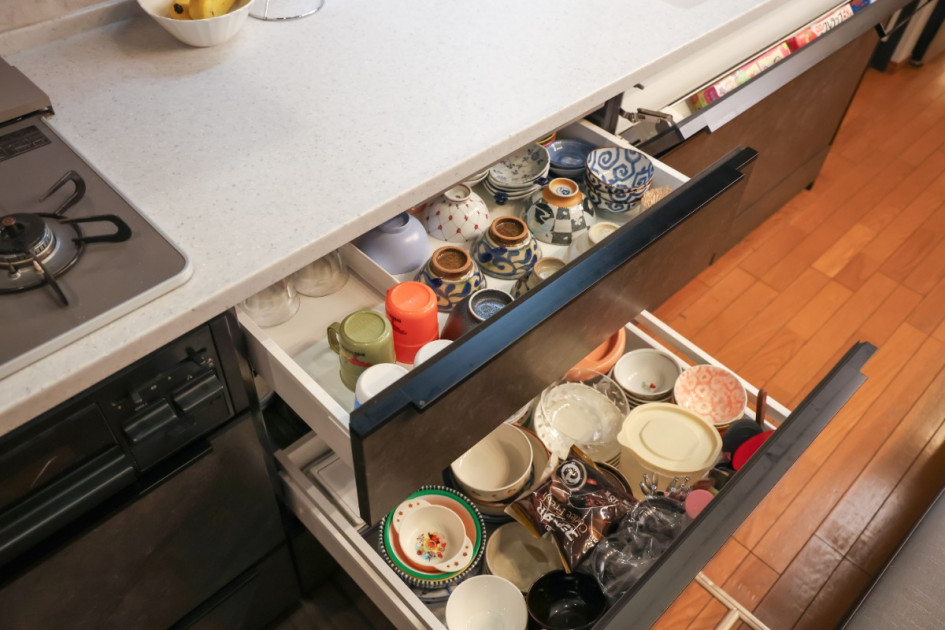 レミューにしたことで、キッチン内部に食器をまとめて収納できるようになりました。実際に使ってみると想像以上の収納力に驚かれ、「まだまだ余裕がある」と喜んでいただきました。