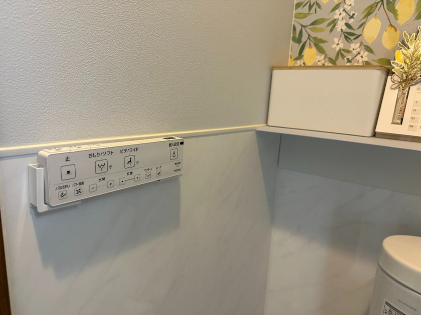 腰壁が全面ホーローパネルのため、リモコンやタオル掛けなどをマグネットで取り付けられます。