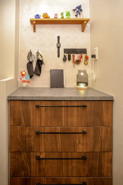 散らかりがちな小物をすっきりまとめられ、便利で美しい空間に生まれ変わりました。