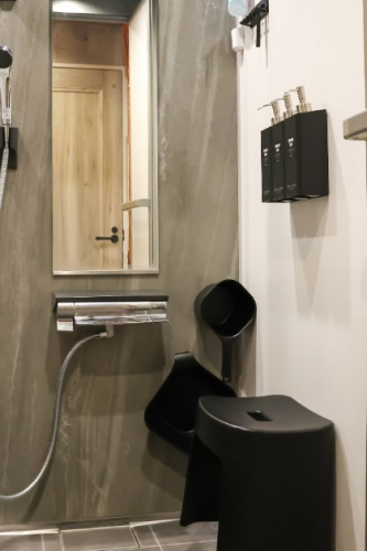 浴室の扉は開けたままにされることが多いそうですが、浴室のデザインとも調和し、空間全体がより素敵な雰囲気になりました。