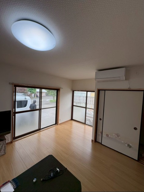 エアコンの容量を上げて位置を変更しました。押入はそのまま残して収納に。広縁まで床を繋げて空間の広がりを持たせました。