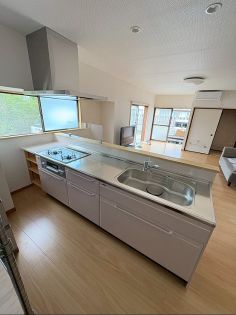 前のキッチンは台所と居間が別々なっていて、キッチンに立っている時は窓しか見えなかったです…。台所にエアコンがなく夏は暑く、冬は寒いキッチンでした。キッチンはそのままの位置で、流し台と内装だけの取替でもいいかなと思いましたが、あかつきさんの提案で思い切って対面キッチンにすることにしました。最初は完成のイメージが出来ませんでしたが、工事が進むにつれて変化する我が家にわくわくしました。対面になったことで開放感がとても出ましたし、孫の様子を見ながら料理が出来ることに喜びを感じています。大変満足しています。