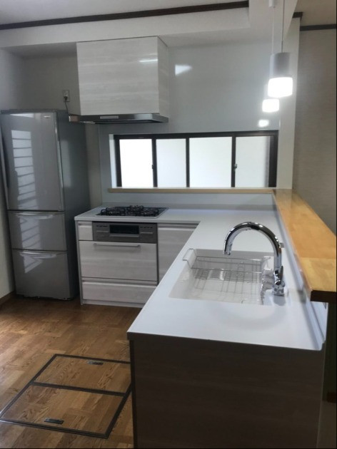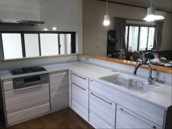 明るくしたいとのご要望でしたので、既存のキッチンには吊戸がついていましたが