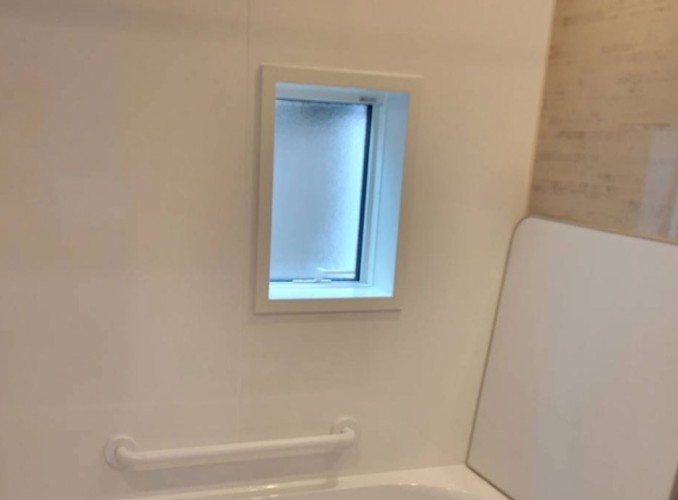 既存の浴室から広さ改修、窓を小さくしてトリプルガラスの窓を採用して、断熱性を良くしました。