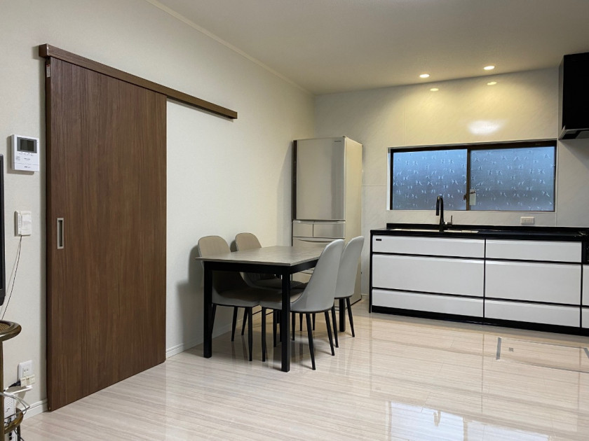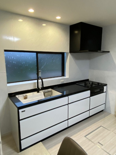 L型だったキッチンもすっきりした形になりお手入れが楽に、入口ドアを引き戸に変更したり、余分な家具を無くし収納スペースをコンパクトに凝縮して頂いたお陰で使いやすく快適な空間へと生まれ変わりました。