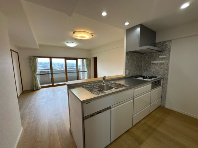 キッチンの垂れ壁を撤去することで、開放感を実現。孤立していたキッチンを