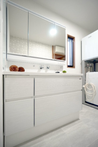 洗面台の高さは、以前よりも10cm高い90cmのものを設置し、奥様の使い勝手がよくなりました。