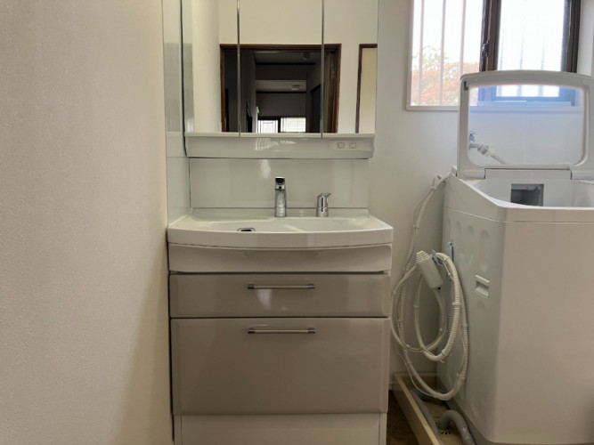 既存の洗面台をオンディーヌに入れ替える事で、収納力が向上し、毎日の身支度がしやすく、見た目も美しい空間に生まれ変わりました。