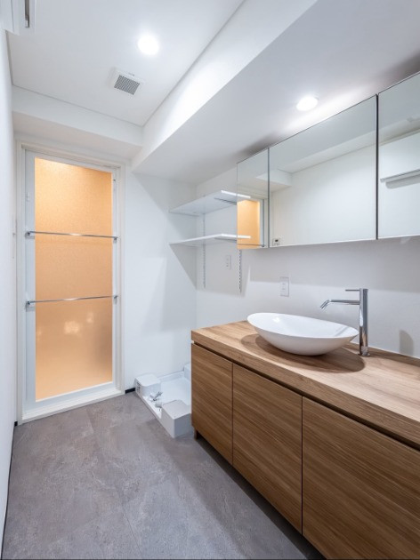 収納も多く、全面鏡張りなので、部屋が広く見えます。洗面台も広々使えて、家族での朝の準備も楽になりました。