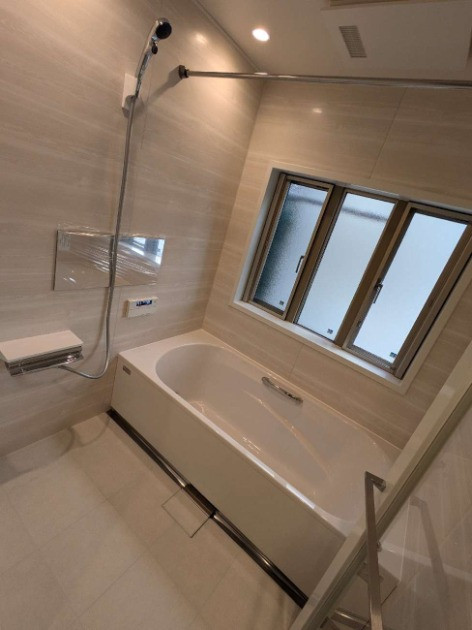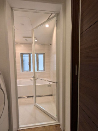 浴室ドアは、透明な強化ガラスにして、よりラグジュアリーな雰囲気に。