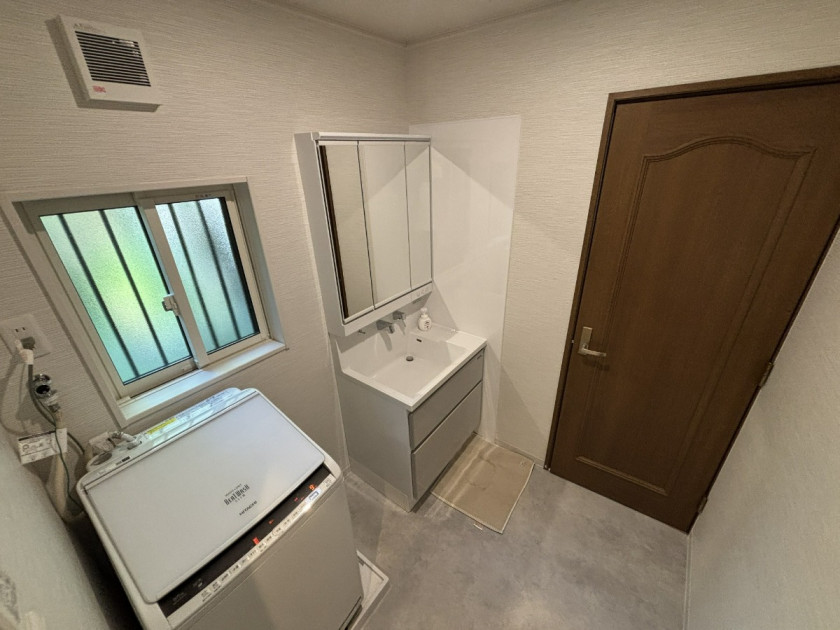 洗面所も、洗面台の場所を変えたら洗濯機と並べられて広々。窓も小さいあたたかい窓に変えてもらって、段差もなくなって安心です。