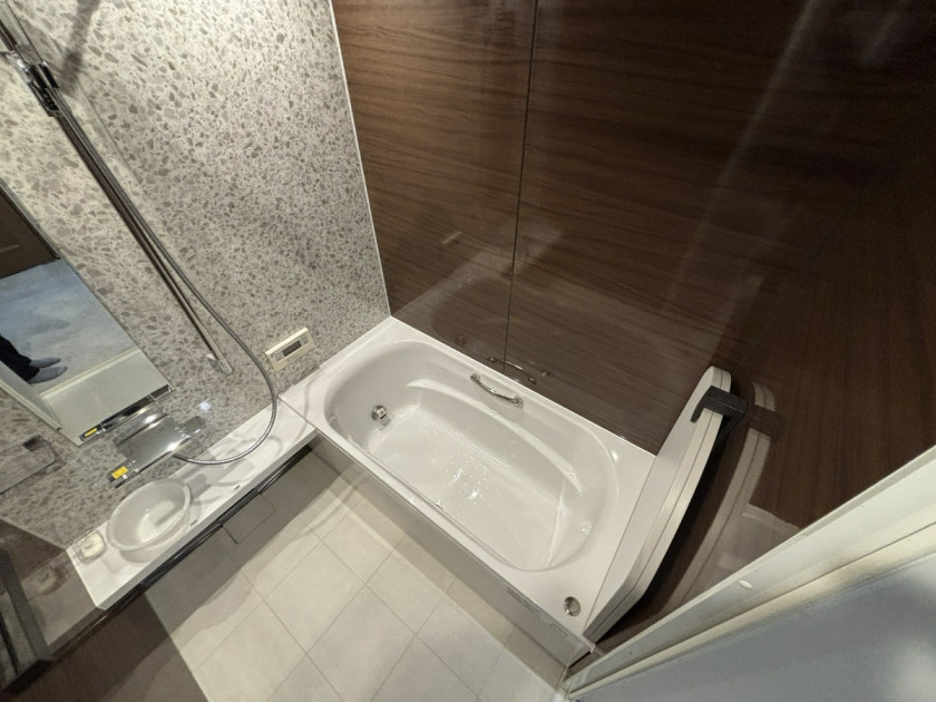 おしゃれなデザインのお風呂と、洗面化粧台で家族みんな大満足です。