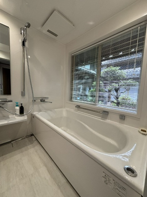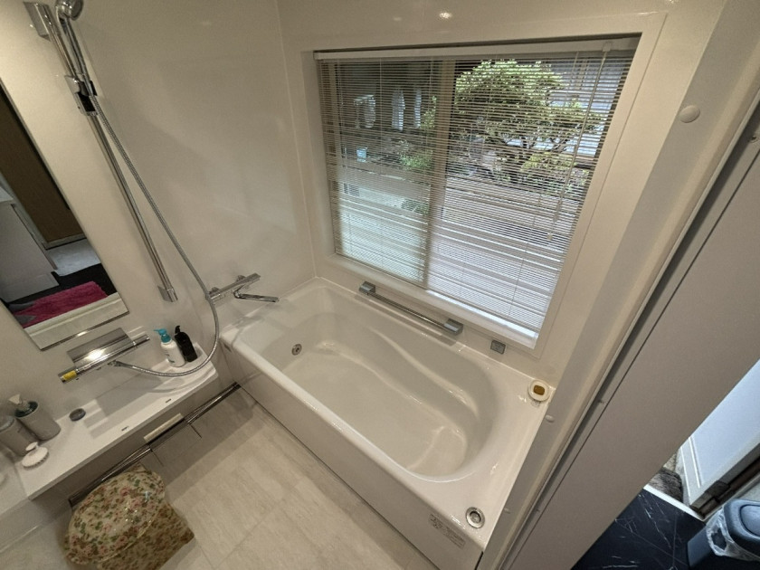 ブラインドを調整しての庭眺めバスタイムに癒しを感じています。